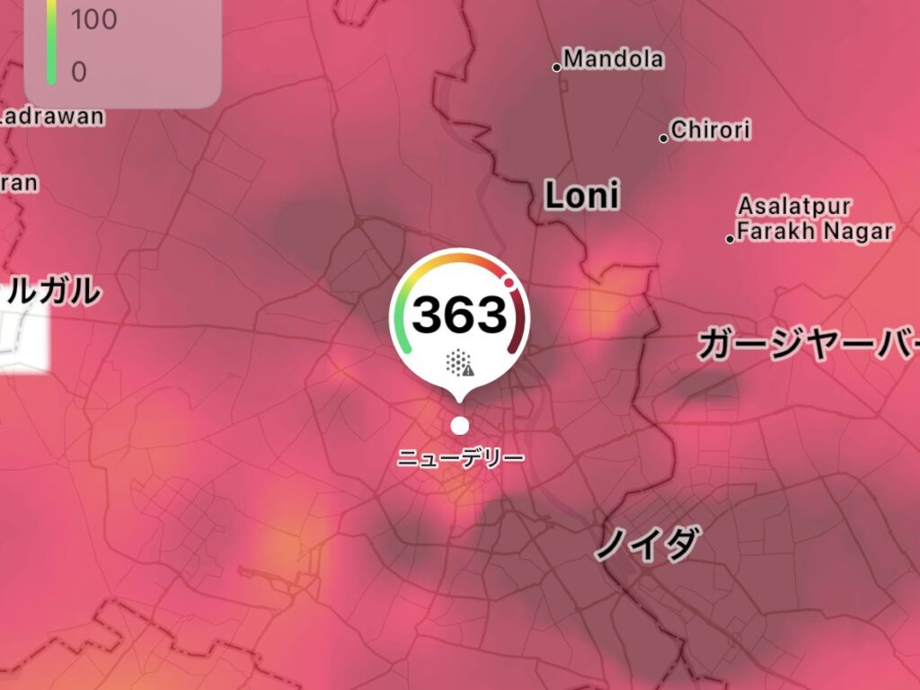 全体が真っ赤になっていて「空気質指数はとても悪い」との表示が。